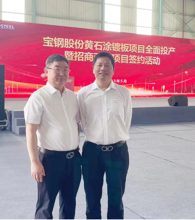 董事長(zhǎng)劉國(guó)民和寶鋼股份黃石涂鍍板有限公司產(chǎn)品總監(jiān)顧進(jìn)榮